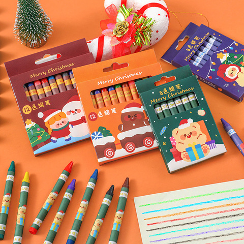 새로운 도착 크리스마스 선물 학교 문구 세트 만화 귀여운 12/8 컬러 드로잉 낙서 왁스 크레용 어린이를위한 세트