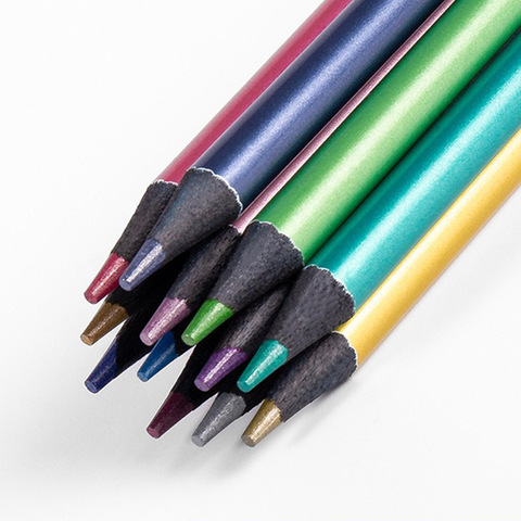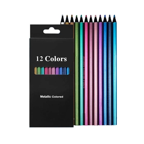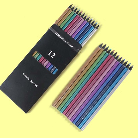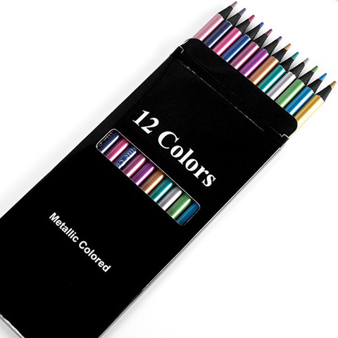Barato Por Atacado 12 Cores Cor Metálica Lápis Desenho Esboço Pintura Lápis De Cor Art Supplies Lápis Colorido Set