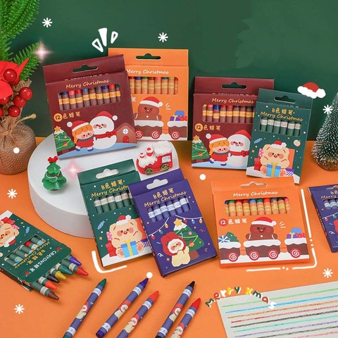 Diseños de dibujos animados de Navidad 12/8 colores Juego de crayones para niños Regreso a la escuela Juego de crayones para niños