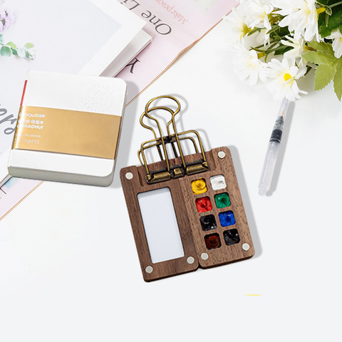 Pocket Artist Aquarela Viagem Paleta De Madeira Set Mini Paleta Aquarela Portátil com Clip para Artistas Pintores Estudantes